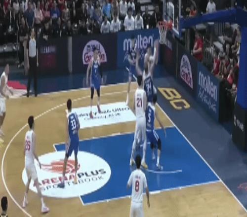 中国台北的三分也连续命中,35-35!——这个困难之后,中国队的前锋开始发力,朱俊龙三分命中,再度拉开分差。但是中国台北两个回合,又追平比分40-40!