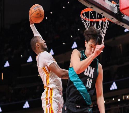 尤其是在进攻端,库明加对于内线的冲击完全势不可挡,不仅送出了一次观赏性拉满的大风车扣篮,还让杨瀚森成为背景板完成了一次炸裂的隔人暴扣充分展现其傲人的运动天赋。