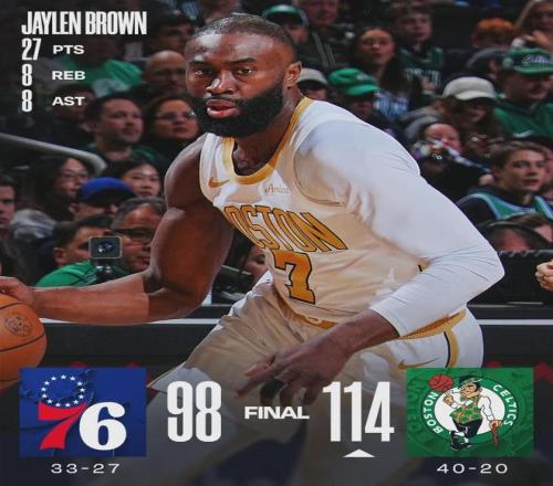 北京时间3月2日,NBA常规赛,凯尔特人114-98大胜76人。恩比德因右侧腹斜肌拉伤,缺席本场比赛,而且接下来的两场也打不了。保罗-乔治依然处在禁赛当中,预计3月26日才能复出。此役过后,76人33胜27负排名东部第六。