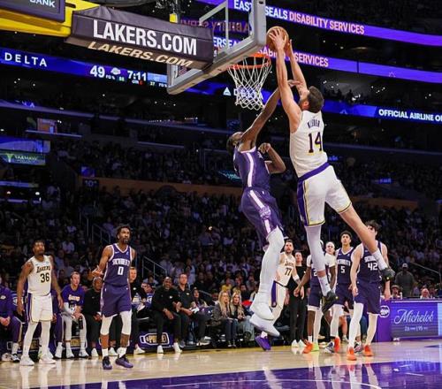 竟然还完成了一记爆扣,湖人替补内线也许偶尔能扮演奇兵的角色