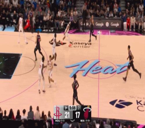 第一节,热火内线韦尔3分球外接球,方圆百里没有任何一个火箭防守球员,只好勉为其难投进了超大空位追身三分,气得乌度卡当场喊停。