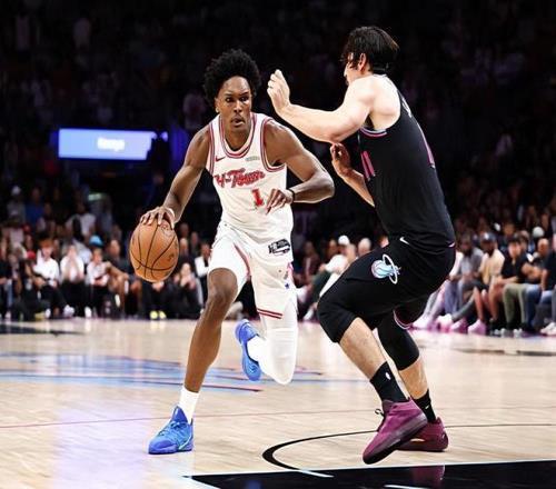 本场比赛中,火箭的先发控卫阿门-汤普森(Amen Thompson)的表现又一次令人大跌眼镜。阿门全场出场39分01秒,投篮16中7,三分线外1中0,罚球12中6,得到了20分11篮板4助攻1抢断的两双数据,其中还包括了4个前场篮板,还有4次失误和3次犯规,正负值为-18。阿门在进攻端还是展现出了一定的冲击力和爆发力,还是得到了不少分数,起到了一定的效果,然而毕竟他是球队的先发控卫,他的传球能力和组织能力依然严重不足,他在外线投篮方面的表现依然很不理想,他对于球队在进攻空间方面的影响也是有目共睹的。即使阿门在场上的表现不算没有亮点,但是他对于球队在进攻端的拖累也是有目共睹的,这样的表现,也在很大程度上导致了火箭的最终失利。