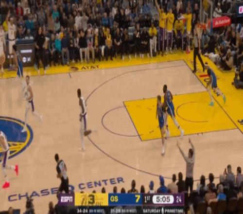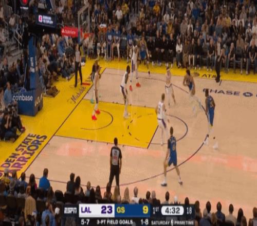 湖人直接把勇士射蒙了,第一节结束,湖人33-20勇士
