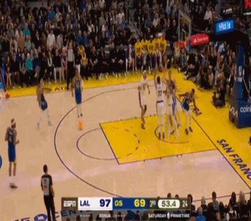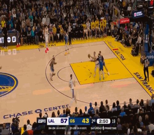 艾奶奶镇守的湖人内线形同虚设,直接被勇士击穿了