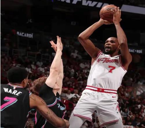我们先来简单回顾一下比赛过程:一上来谢泼德延续良好手感连中三分带队打出14-4的开局,短暂调整后,热火抓住史密斯缺阵火箭内线护框不足的问题,攻防两端抓住申京这个点打,连中3记三分迅速反超比分,而后热火长时间占据场上主动,第二节期间热火轰出19-2的进攻高潮取得两位数领先,关键时刻杜兰特和谢泼德联手带队抹平分差,半场战罢火箭52-51反超1分进入中场休息。下半场热火占得先机,内外开花再度占据场上主动,史密斯不在对于这支球队的影响太大了,进攻端只有杜兰特能稳定输出艰难咬住比分。末节火箭情况还是没有好转,反倒热火这边持续打出经常配合维金斯反击暴扣打2+1,帮助热火在时间所剩无几时拉开两位数分差,最终火箭105-115不敌热火,吃下耻辱一败!