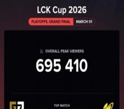 电竞体育3月2报道 据Esports Charts数据统计,刚刚结束的LCK杯冠军赛GEN对阵BFX在海外仅有69万收视率。
