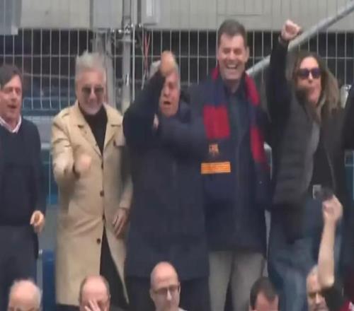 报道称,拉波尔塔又一次在看台上成为焦点。在巴塞罗那对阵比利亚雷亚尔的比赛中,这位巴萨前主席被Esport3的摄像机镜头捕捉到不寻常的一幕:当看台上部分球迷高唱“跳起来,跳起来,是皇马球迷就别跳”时,拉波尔塔不仅加入合唱,还在座位上随着节奏跳动,同时做出了一个打伞的不雅手势。
