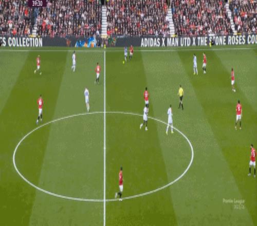 在这套首发思路下,曼联的前场站位变成了典型的样子: